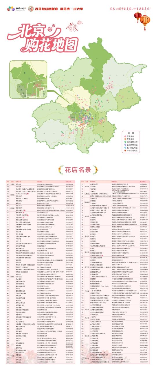 全市23家花卉市场、100家重点公园、100家园艺驿站、400家重点花店、600家“北京花卉产业链数字平台”线上商户、29家地铁“一朵小花”点位,以及美团、京东、盒马鲜生等线上平台商家,构建“双馆引领、百点联动、千店共振”的融合网络,并辐射带动全国多城市多区域积极参与。