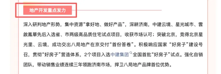 例如,在住宅地产开发层面,中建东孚是中建八局的地产旗舰平台,但山东中建城发深耕济南。