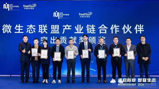 大会对微生态产业链中做出突出贡献的16家代表,颁发了“微生态联盟产业链合作伙伴突出贡献奖”。获奖代表涵盖核心应用端、公立及非公医疗机构、金融与服务支持等多领域,彰显了产业生态共赢未来的坚实基础与坚定决心。