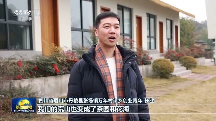 四川省眉山市丹棱县张场镇万年村返乡创业青年 任业:我们的荒山也变成了茶园和花海,土路也修成了观光步道,回乡开民宿两年来,旺季的时候天天爆满,还能照顾老人和孩子,日子是越来越好。