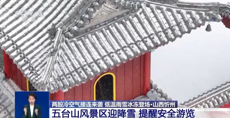 山西忻州:五台山风景区迎降雪 提醒安全游览