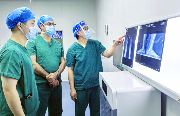 仅半日门诊,温建民教授接诊了近50名患者;手术中,平均仅十分钟即可完成双足𧿹外翻的切骨与整复。巴普洛夫教授频频赞叹,对体系的理论设计、器械创新与临床效果给予高度评价。