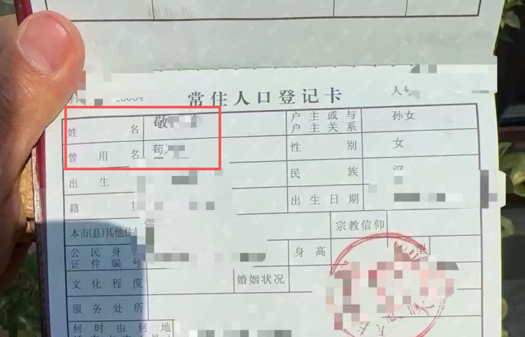 “那段时间,我把软件删了,几晚都睡不好,想怎么改名,后来听说陕西那边能改,也有很多人改成功。”敬先生告诉记者,等妻子出了月子,他就开始准备材料。他查询到了很多“苟”姓改“敬”姓的案例,前后历时大约3个月,终于改姓成功。
