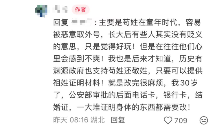 苟先生曾表示: “我们不是随便改第三方姓。”听说苟姓是由“敬”姓演变而来,所以长辈们同意改“敬”姓。