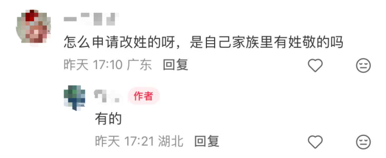 “为了小女儿,苟姓改敬姓。历时月余终成功,三十岁改名改姓。”近日,一名网友发帖称,为小女儿和自己改名改姓成功,发帖纪念一下,苟姓改敬姓。该帖获得不少网友点赞评论。