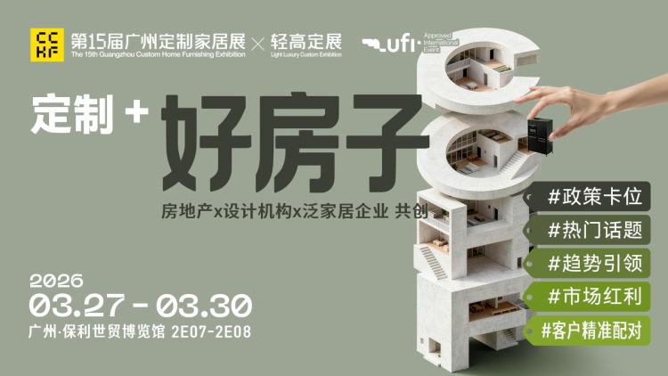 3月27-30日,2026广州定制家居展暨轻高定展将以“定制+好房子”为主题在广州启幕,活动旨在将政策导向、消费需求转化为商机与产业解决方案。