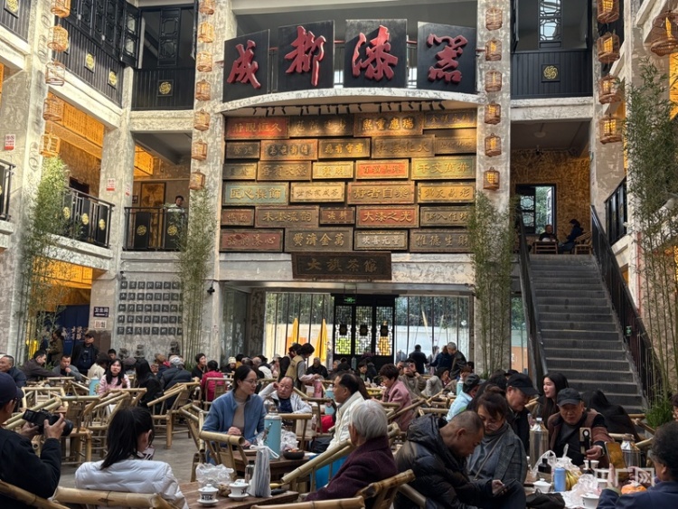 成都老旧漆器厂变茶馆,吸引众多消费者(央广网记者 唐诗敏 摄)