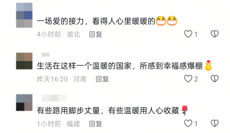 高铁上,前排乘客悄悄调直椅背,为她让出空间;邻座乘客帮她安置行李,又在她耳机不慎滑落时,迅速弯腰拾起递到她手中;出站时,工作人员自然牵起她的手,完成一场场“无缝接力”。这些她当时未曾察觉的细节,被网友一一捕捉并留言告知。