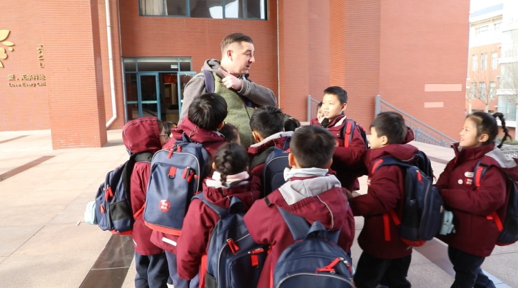 清晨的阳光,透过山东淄博高新区外国语学校一年级教室的窗户,洒在一群稚嫩的脸庞上。阿德里安正站在讲台上,面带微笑,为孩子们教授英语课。