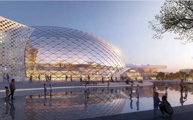 无锡交响音乐厅的设计方案以“太湖明月”为理念,寓意音乐像月亮一样从无锡太湖湖面冉冉升起,飘向广袤的世界,很好地彰显出了无锡独有的城市文脉和城市品质。