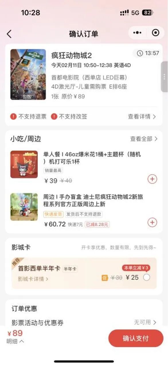 2026年2月13日至23日,招商银行个人信用卡持卡用户在掌上生活App搜“影票”购买电影票,可享“19.9元起观影”活动,每天上午10点开抢。数量有限,先到先得。