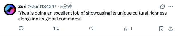 央视春晚义乌篇章播出后,海外社交平台相关话题热度上升,“Friendly”“Inspirational”“Dream Land”成为国际网友描述义乌的高频词,不少外国网友直言“春晚让我看到了义乌的魅力,今年想去义乌看看。”一个在义乌生活的外国网友说自己是“Yiwuise”,很快得到了不少人跟评点赞,说自己也要去义乌玩,当“Yiwuise”。