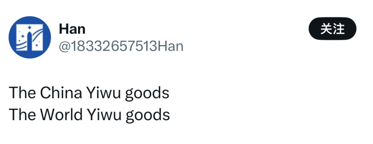 在海外社交媒体带有“Yiwu”标签的话题下,涌现出大批网友的提问,很多人在问“哭哭马从哪里买?”“现在有货吗”?网友感慨“全球氛围感是义乌给的”“义乌精准拿捏世界需求”。