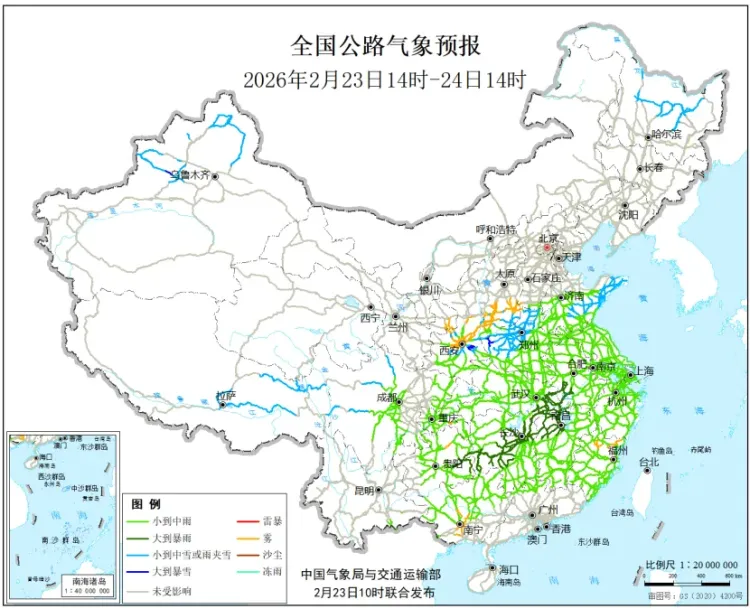 23日8时至24日8时,新疆北疆北部和西部山区、陕西中部、河南西部等地局地有大到暴雪。江淮大部、江汉东部、江南北部和西部、西南地区东南部等地部分地区有中到大雨,其中,湖南中部、江西北部等地部分地区有暴雨。