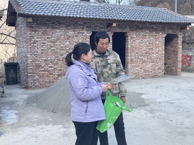 樊怡帆(左)向当地居民普及森林消防安全知识