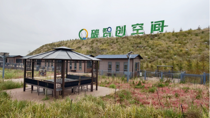 走进准格尔召镇零碳智创空间,标识中藏着巧思:名称中的“零”字被一个由三色圆圈构成的符号取代。蓝色代表工业根基,绿色寓意矿山转型,蓝色象征光伏新能源——一个小小的符号,浓缩了整个空间的产业变迁。