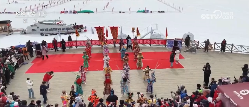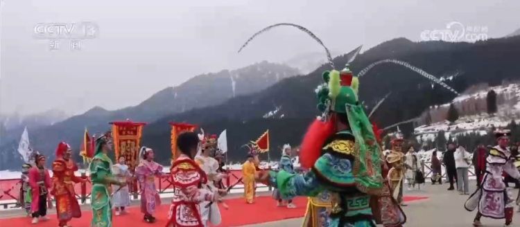 央视网消息: 元宵节到来之际,新疆天山天池景区上演了一场南北文化相逢的精彩演出,广东英歌舞邂逅西北的高山湖泊,为游客营造出独特的节日氛围。