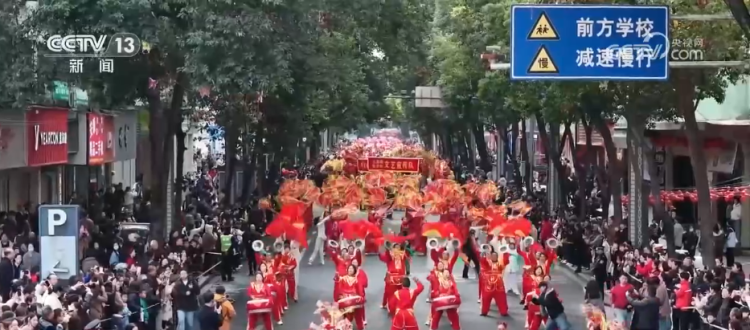 3月3日就是元宵节了,这几天,各地举办丰富多彩的民俗活动迎接元宵佳节的到来。在青海海东市,3000多人组成的民俗巡游队伍浩浩荡荡走上街头,舞龙舞狮引得观众阵阵喝彩。