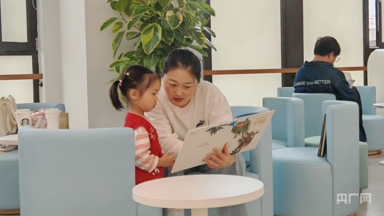 市民带孩子在浦东图书馆少儿分馆阅读绘本(央广网记者 冯丽 摄)