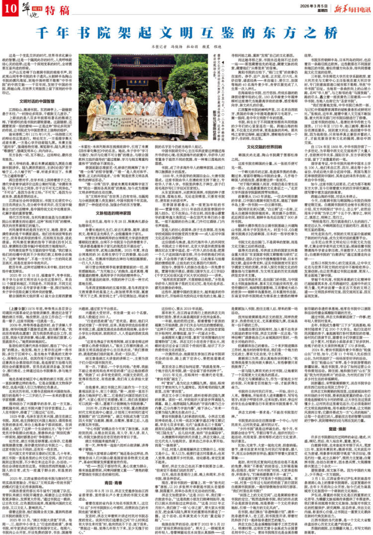 值得关注的是,邓洪波主持的国家社科基金重大项目“东亚国家书院文献整理与研究”正系统推进,团队行走中外搜集整理李朝、日本书院文献,盘活珍贵史料,证实书院制度对东亚汉字儒家文明的贡献,并深入探究书院文化的传播脉络与交融特质,为文明互鉴的历史实践提供坚实学术支撑。