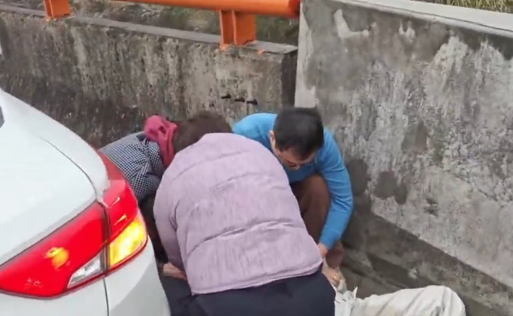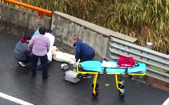 与一般车辆故障不同的是,车边上几个人神色异常慌张,围在一起显得极为焦急。把监控再拉近,能看到一名年轻姑娘已经不省人事。