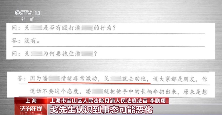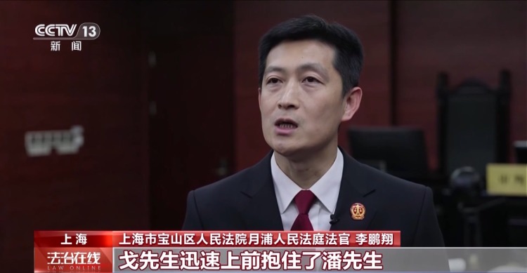 上海市宝山区人民法院月浦人民法庭法官 李鹏翔:戈先生迅速上前抱住了潘先生,潘先生挣扎,两个人就一起倒地,倒地之后潘先生是被压在下边,戈先生是人在上边。