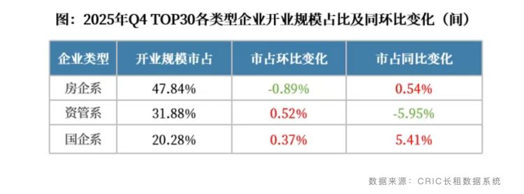 克而瑞长租数据显示,截至2025年年末,国企系企业在住房租赁市场TOP30企业中的市场份额占比已超过20%。