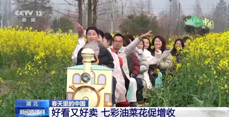 为吸引游客,当地在花海中设置了小火车、栈道等体验项目,而这片花海,其实是种植再生稻的冬闲田,通过“稻油轮作”模式,农户每亩可增收200元至500元。