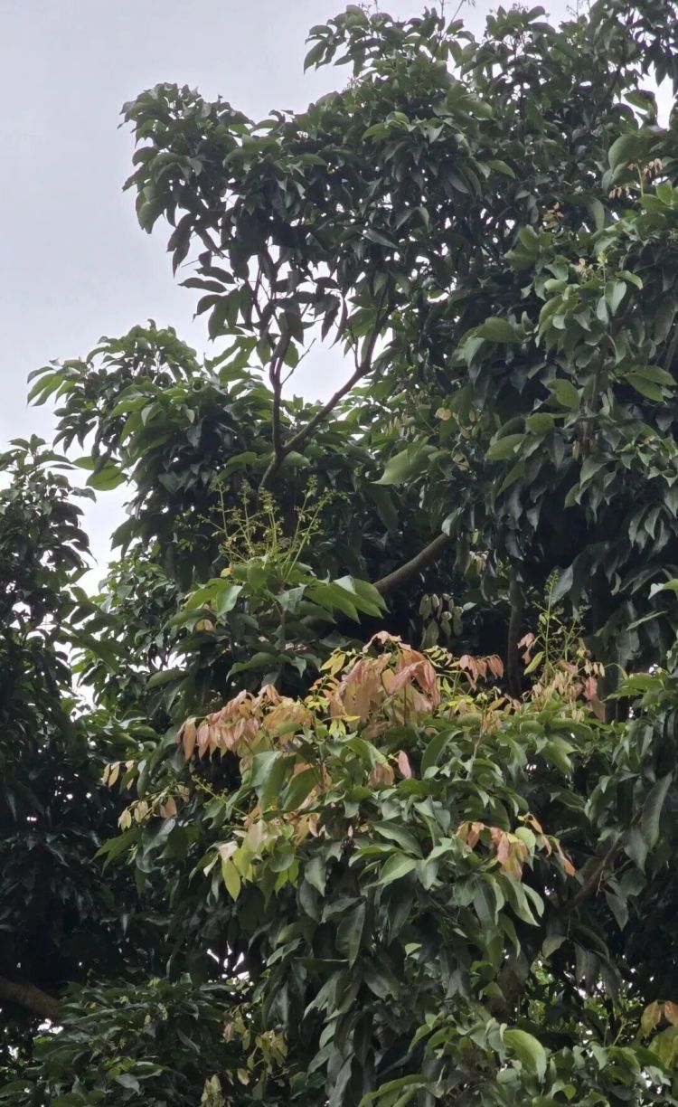 小松说,荔枝在冬末春初需要一定的低温来促使花芽分化,但是2025年冬天气温太高,平均在23摄氏度以上,形成了“暖冬”,温度过高导致新芽大多长成了叶子而非花穗。并且,去年荔枝产量高,过多消耗了树木的养分,加上去年冬天以来雨水偏少,所以本应该在春节期间成花的优质品种果树基本少有花穗。