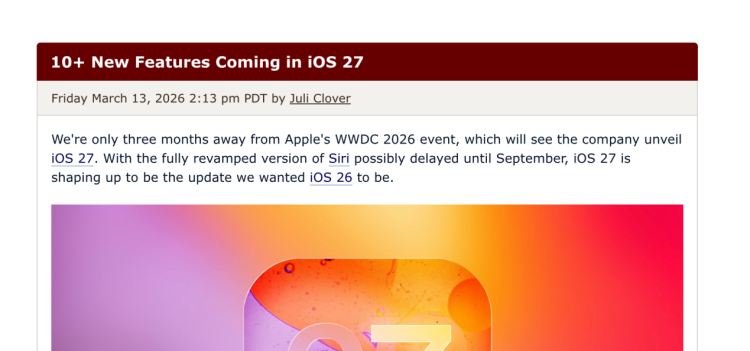【环球网科技综合报道】距离苹果2026年全球开发者大会还有三个月,届时公司将正式发布iOS 27。由于全新改版的Siri可能推迟至9月亮相,iOS 27有望带来重大更新。