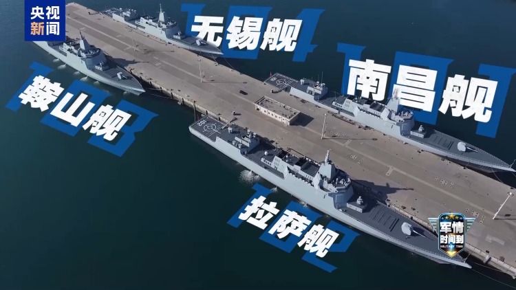 军事评论员 曹卫东:如果我们将来有两艘航空母舰在一起出动的时候,组成了一个双航母编队的时候,可能就需要的不是一艘两艘的055型的导弹驱逐舰,而是三艘四艘的055型的导弹驱逐舰来作为配属的舰只来使用。所以,四艘舰的同框预示了在将来它们不但会同框,还会同训,这样的情景实际上是为双航母编队来做准备的。再有一点,如果我们在战争力度比较强的情况下,我们用更多的055型的导弹驱逐舰来共同完成对海打击或者对陆打击的任务,那我们的能力也会是更强的。