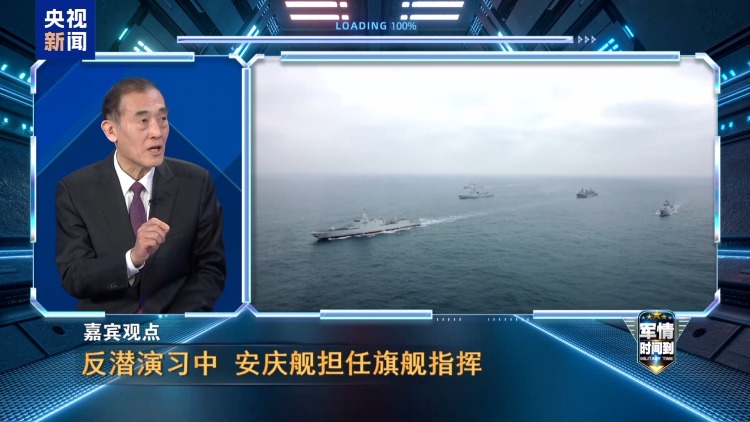 军事评论员 曹卫东:虽然安庆舰它现在参加的是反潜演习,但它并不是单打独斗,它是和其他的水面舰艇和直升机一起来参演的,所以体现了它在未来的时候可以高效地搜潜,就是发现水下的潜艇。另外,由于安庆舰它是万吨级的导弹驱逐舰,它的机库里边可能能够搭载两架直升机。因此,安庆舰参加这次反潜的演习,很有可能担任旗舰(指挥舰)的位置。同时,它可能为将来搭载像直-20这样更好、更先进的直升机联合反潜做尝试。一方面说明它实战化、训转战的这种要求越来越高,还有就是我们的平台越来越先进。