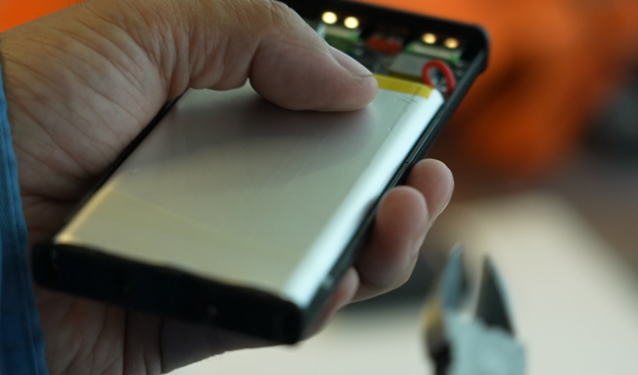 记者带着从市面上获取的部分假3C充电宝来到工业和信息化部中国电子技术标准化研究院安全中心实验室,对相关产品进行了检测。在拆解环节,实验人员发现这些充电宝不仅外壳印刷的信息是假的,产品的内部电芯也没有按照要求印刷生产厂家的信息,属于“三无电芯”。