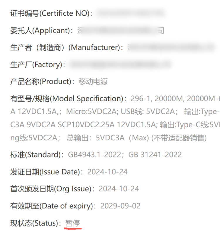 某公司的3C认证已经被暂停