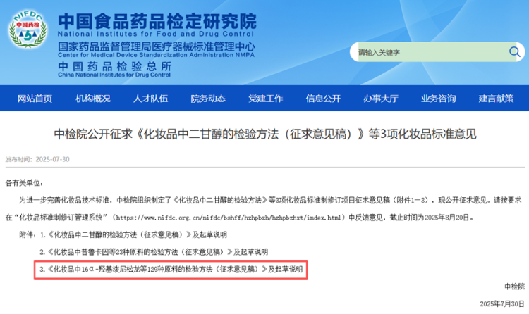 截图来自中国食品药品检定研究院网站