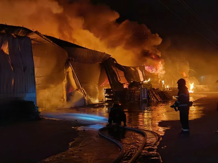 2025年1月29日凌晨,汝城县永安村某物流园内一钢结构仓库突发大火,现场火光冲天、浓烟滚滚。汝城县消防救援大队接警后立即调派力量赶赴现场,经过全力扑救,大火被成功扑灭,所幸此次火灾未造成人员伤亡,但仓库内仓储物资已尽数化为灰烬,经专业机构评估,直接经济损失高达838.85万元。