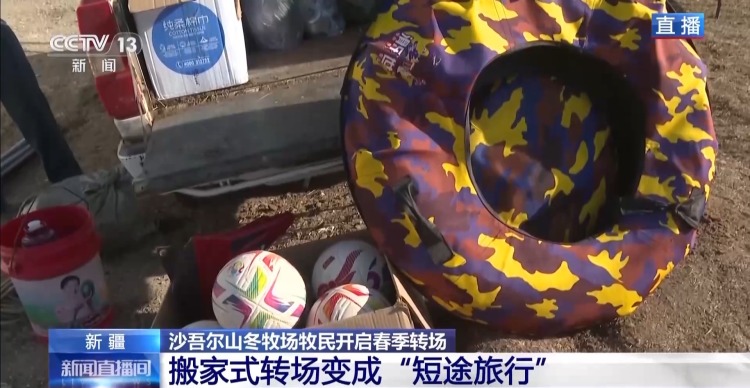 在这些家当中,记者还看到了一些特别的东西,像是足球、滑雪圈,这些是什那尔妻子网购给孩子的。现在什那尔家的转场有点像是一次“短途旅行”,轻装简行,很方便。