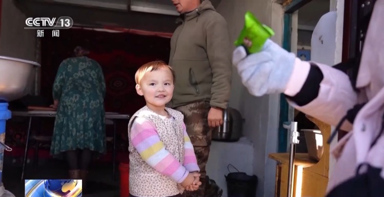 竖着两根手指头说自己三岁的宝拉,是这片冬窝子里唯一的孩子,她从小在牧区长大,赶狗、喂牛、铲雪,每天都玩得不亦乐乎,也给整个冬窝子增添了不少欢乐。