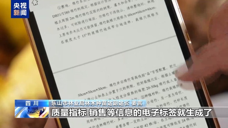 乐山市林业局林木种苗站副站长 姜言:这样扫一下,再轻轻一点,一张包含品种名称、质量指标、销售等信息的电子标签就生成了。有了它,树苗的“身世”就能够一目了然。
