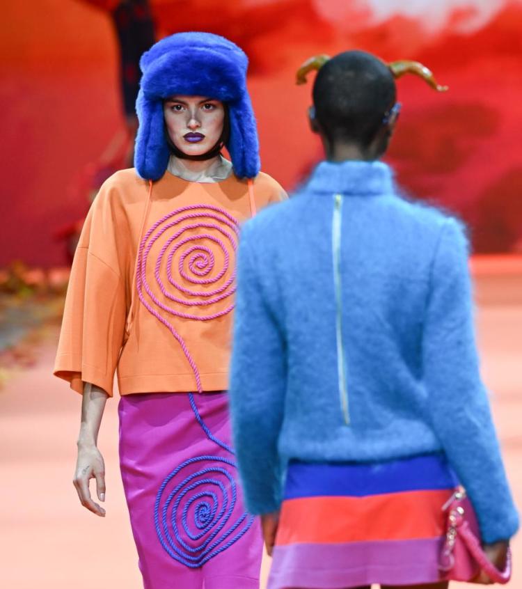 3月20日,模特在西班牙马德里时装周上展示Agatha Ruiz de la Prada品牌的2026/27秋冬新款时装。
