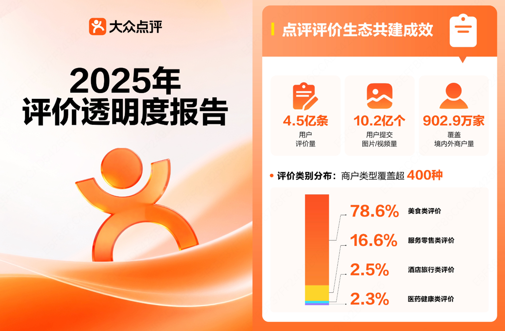 报告披露,2025年,大众点评率先引入AI智能体辅助人工审核评价,以线上化的物理世界信息作为“信息底座”,提升识别虚假评价的能力;分层处置AIGC评价共1161万条,守护AI时代稀缺的“真实”;升级星级评分规则,聚焦“赠品换好评”违规行为,高强度促评商户数下降42%;上线“点评众议厅”,让规则更贴合真实消费场景,持续推动评价生态的社会共治。