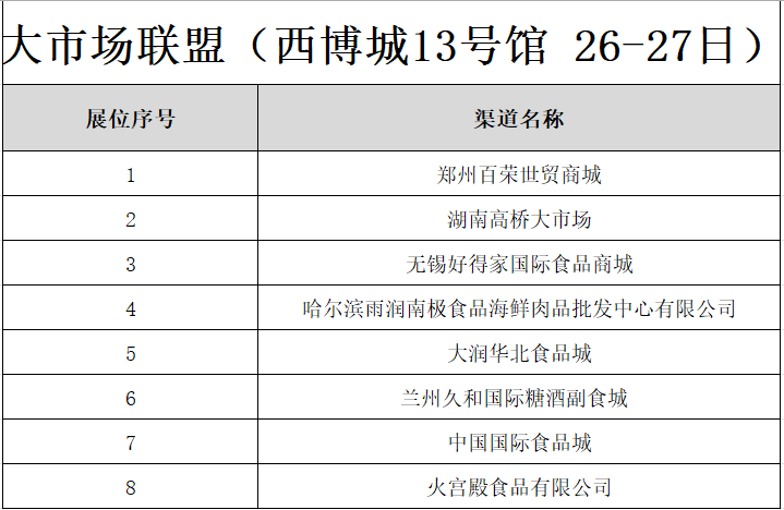 本次活动区内特设大市场联盟专属对接区,全国核心食品批发市场强势集结,带来海量优质资源及商机,品类全覆盖!