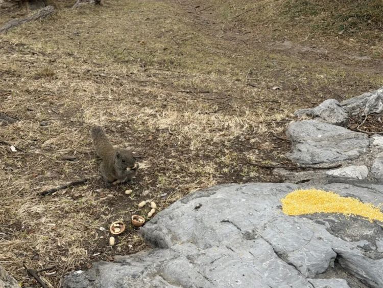 天坛公园官方科普资料显示,目前园内松鼠有欧亚红松鼠、赤腹松鼠、岩松鼠和花鼠,它们都非常喜欢吃坚果,其中有着蓬松大尾巴的欧亚红松鼠对坚果依赖度较高。因此,不少网上的投喂攻略建议市民携带核桃、花生、栗子或榛子等坚果,能提高“遇鼠率”。