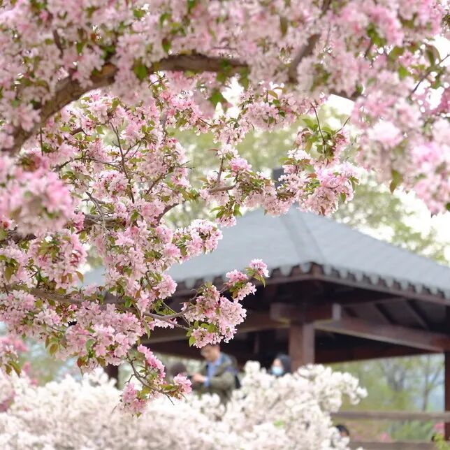 四月中下旬的世园公园,海棠开成了春日梦境。50余个品种、5200余株海棠争奇斗艳,北美海棠明艳活泼,西府海棠端庄典雅,八棱海棠别具韵味 ,粉白、淡粉、深粉等色彩交织将园区晕染成一幅绝美的春日画卷。
