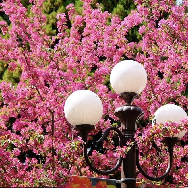 沿着 “海棠-美女樱” 景观大道与南北路环线海棠大道漫步,繁花似锦,远山近水相伴,微风拂过,花瓣如雪飘落,仿佛踏入古代文人笔下的仙境,浪漫至极!中国馆前草坪13 株承载中外友谊的西府海棠傲然挺立,约6公里的园区南北路,海棠争艳,微风起时,便是一场浪漫花雨,百果园的海棠迷宫,粉花摇曳是亲子探秘的欢乐天地。