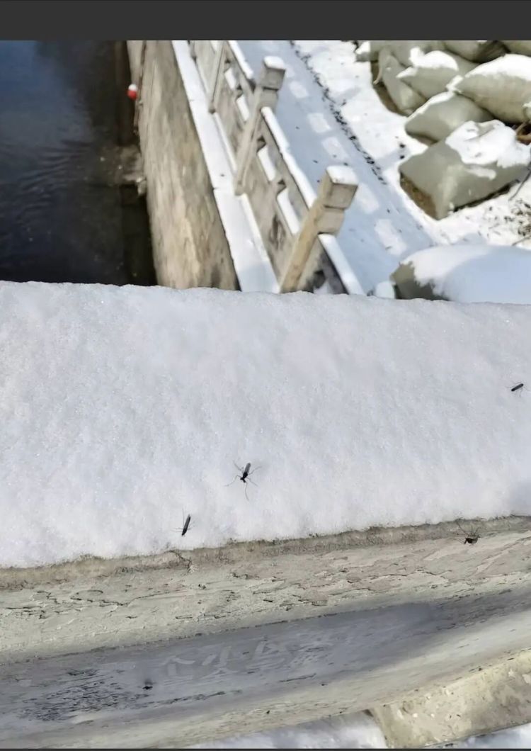 网友拍到北京雪地里有蚊子在爬。 图片据网络