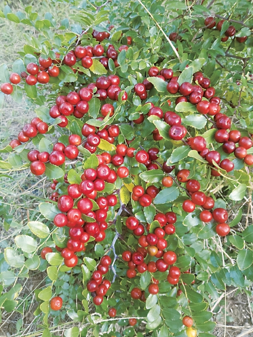 玫城酸枣浑身是宝,根、叶、刺、树皮均可入药。其中酸枣仁是安神养心的常用中药材,被誉为“东方睡叶”的酸枣叶及嫩茎可制成养生茶,果肉能加工为酸枣汁、粉、糕、酒等产品,枣花可酿蜜,枣核壳能制作活性炭,枣木为优良用材……