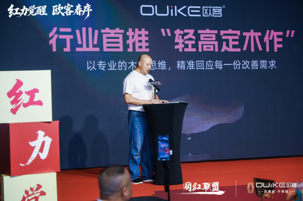 3月27日晚,OUiKE欧客携手泛家居网红联盟,同期举办了“欧客轻高定木作·达人之夜”主题活动。活动现场,OUiKE欧客创始人麻敏杰正式发布了“轻高定木作”全新品牌定位,明确提出自身在轻高定领域的定位:“比高定降一级,比传统轻高定高一级”。