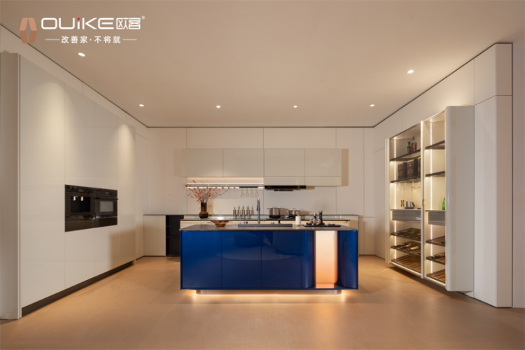逸居厨房系列以“社交厨房”为设计核心,将精致实用与生活仪式感自然相融。整体采用经典U型布局,以模块化设计灵活适配多种户型。视觉核心处,岛台自成焦点,其漆面甄选宾利同款“水晶蓝”豪车金属漆打造,质感高级、耐用耐看,可轻松满足西餐烘焙、亲子互动、亲友小聚等多场景需求。此次获奖,从专业层面印证了OUiKE欧客在轻高定木作领域的产品设计与工艺水准。