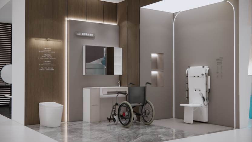 “颐养”套间围绕康养休憩与便捷照料场景展开,特别考虑了轮椅转移角度,强调安全支撑与防摔设计,真正实现“稳如磐石,防摔更安心”。“悦养”套间聚焦悦心康养,营造惬意且满含惊喜的使用氛围。“清舒”套间定位轻享客房,强调科技与舒适的融合。“净界”套间聚焦无水压限制与智享生活。“轻澜雅境”“云润灰”“墨韵东方”三大套间则分别以东方隐奢、自然诗意、极简美学为基调,将现代设计与东方美学相融,呈现不同风格的星级卫浴体验。
